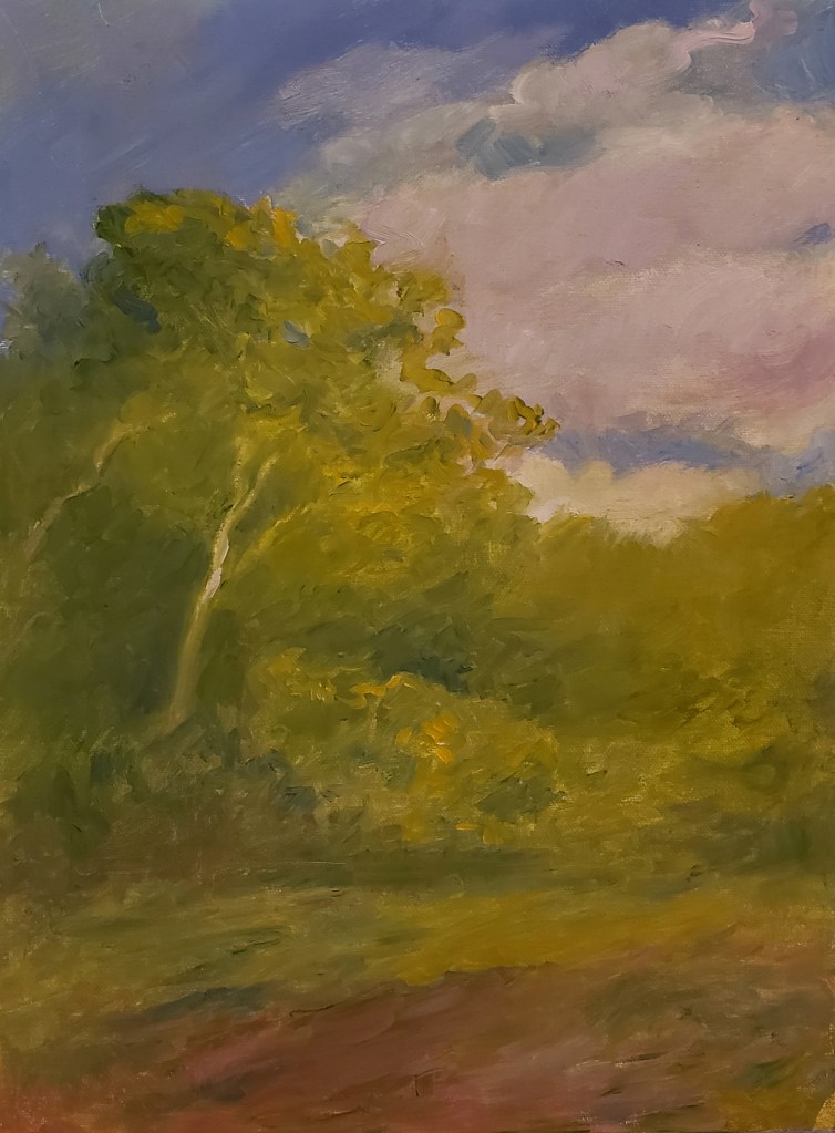 I made a decision to remove the vertical tree that was directly behind the large tree in front. I very rarely change from the optical image but in this case I did not think that vertical mass was working in the composition.