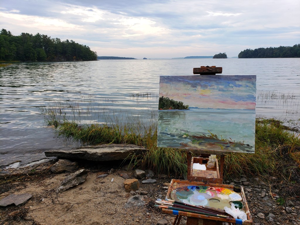 Most camping places close by Oct. 15th. Here are two of the paintings from Wolfe’s Neck. Next stop along the beautiful coastline is Southport and Boothbay.