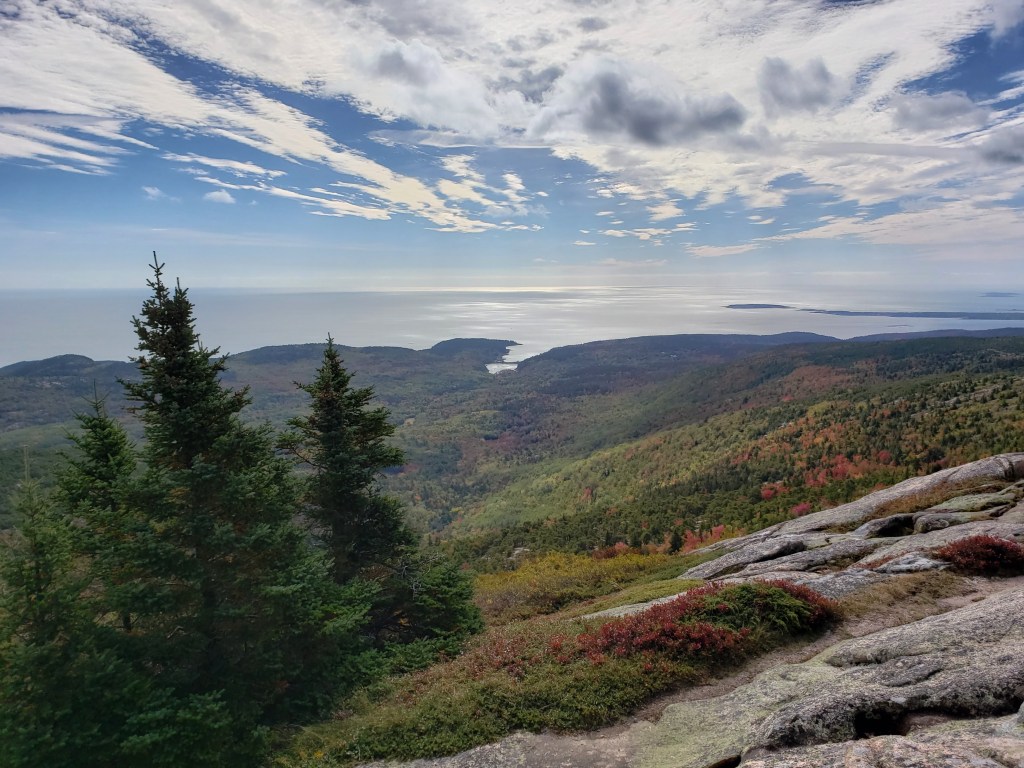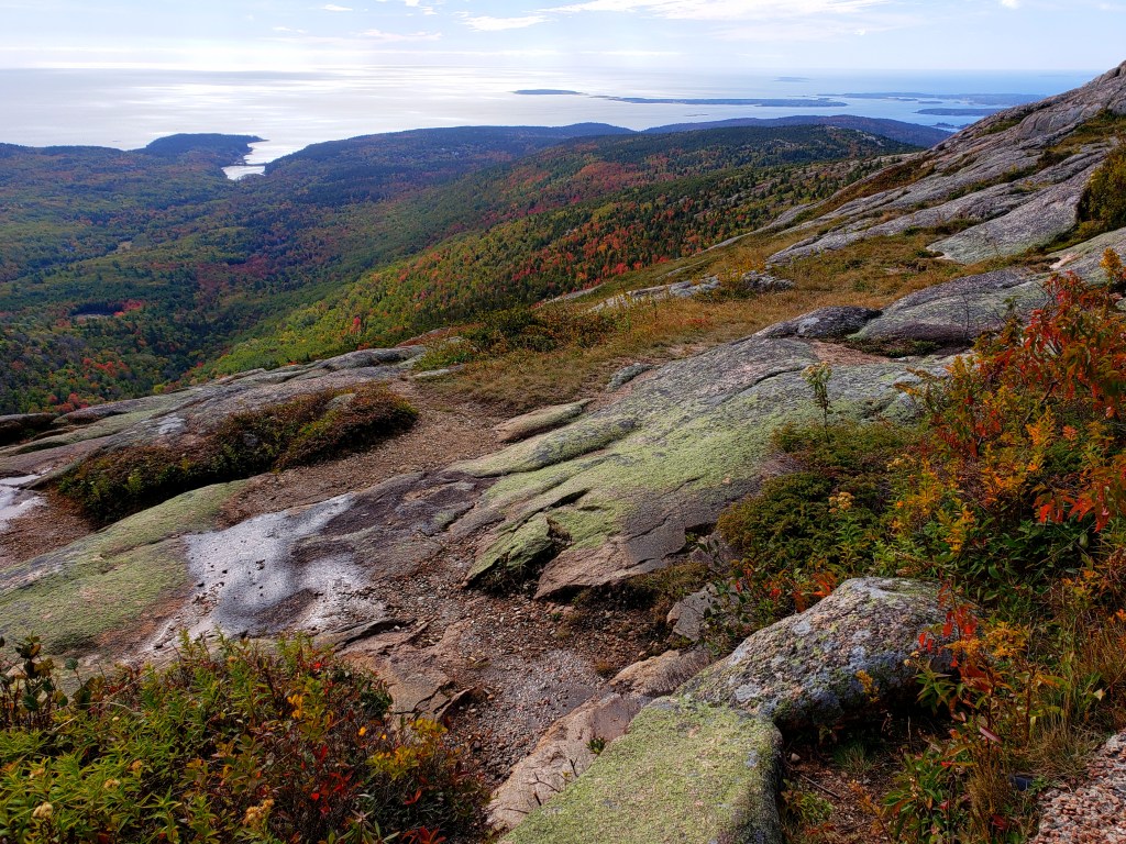 Continuing up the gorgeous coastline of Maine we enter Down East Acadia According to the Down East Magazine this term meant “When ships sailed from Boston to ports in Maine (which were to the east of Boston), the wind was at their backs, so they were sailing downwind, hence the term ‘Down East”. The Greek word “Acadia”means “earthly paradise” and I would agree with this description. Our first visit was to Cadillac Mountain. It was an extremely cold and windy day but the views were breathtaking.