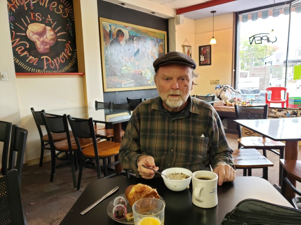 Just want to point out a great place in town called “The Common Good Soup Kitchen” I Love there mission statement “We are a non-profit community based organization dedicated to promoting health, nutrition, and fellowship, among the residents of Mount Desert Island”. The food is free if you can believe it. Donations are glady accepted. Delicious healthy food made by volunteers who want to help the needy and the not so needy. Comraderie over a bowl of hot steaming soup and a popover is lovely. Stop in the next time you are visiting Mount Desert Island. The location is 19 Clark Point RoadSouthwest Harbor, ME . I found this to be the best popover on the island and I have had several on this trip. “A popover is a light, hollow roll made from an egg batter similar to that of Yorkshire pudding”. Recipe: 1 1/3 unbleached white flour, 1/2 t. salt, 1 1/3 cups milk, 2 large eggs Easy huh? well I will have to try to bake one when I get back home. Not sure if I can top the Common Good Cafe’s Perfect Popovers.
