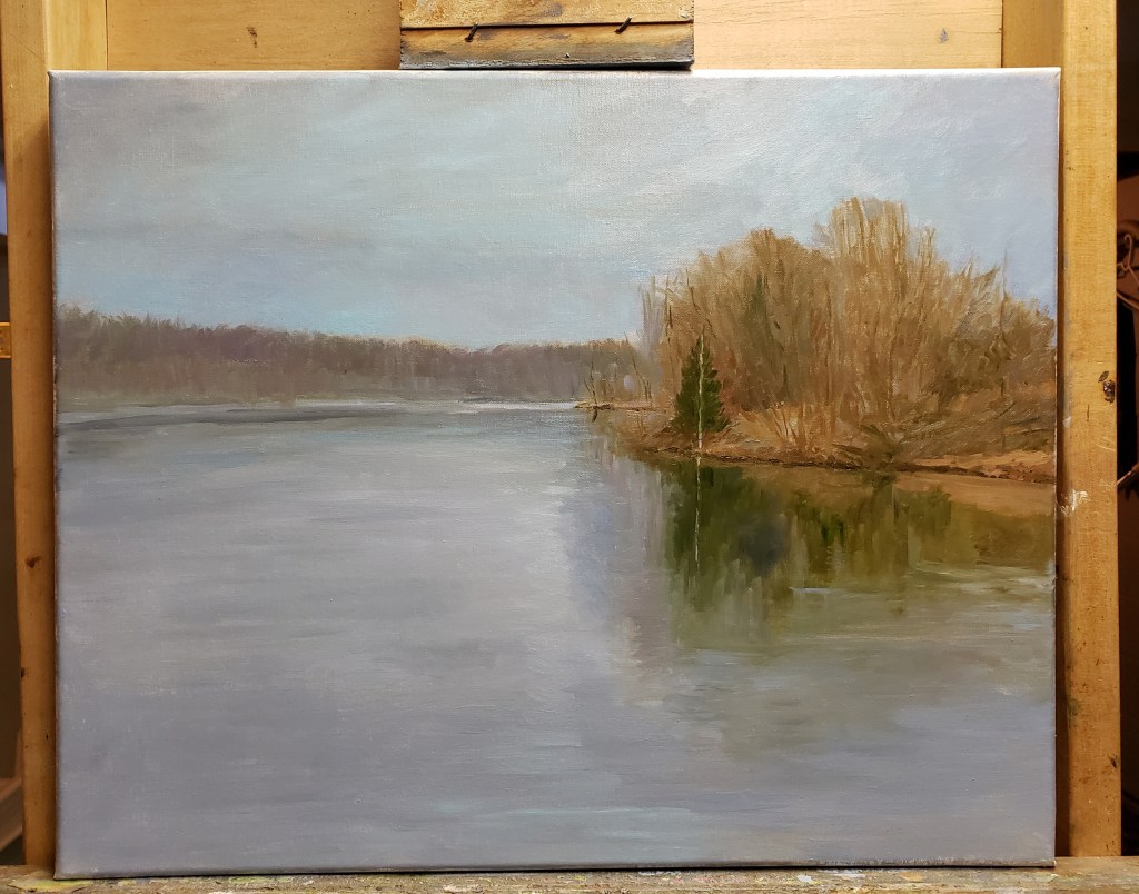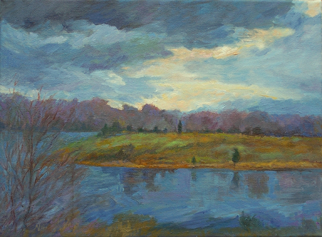 This is a very quick study done of Little Seneca Lake which is located at Black Hills Park. The lake was created by the construction of a dam on Little Seneca Creek. It is actually a reservoir for emergency water supply for the metropolitan Washington, D.C. area. It is a beautiful lake that our family has enjoyed since we moved here in Boyds over thirty years ago. I knew one of familys who owned a farm which was flooded to create the lake. Other historic sites that was sacrificed for the creation of the lake was a one-room schoolhouse and a log slave cabin and the home and farm of James Boyd, who the town of Boyds was named after. Kind of sad to lose these places of history but we all enjoy the beautiful lake and park.