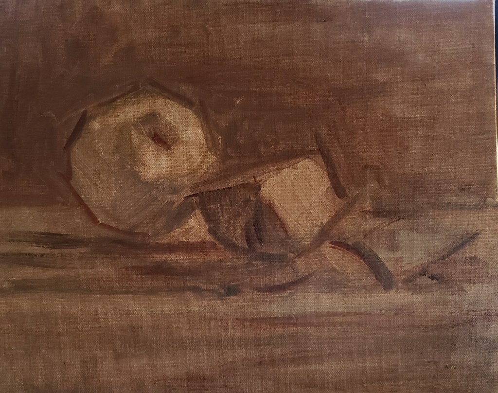 It is sometimes very hard to concentrate on a painting but somehow this little study gave me a period of contemplation and the act of focusing on inanimate objects that do not move or change much is refreshing from the ever changing landscape light. I highly recommend returning to the still life study. It is a good remedy for staying at home and “social distancing”.