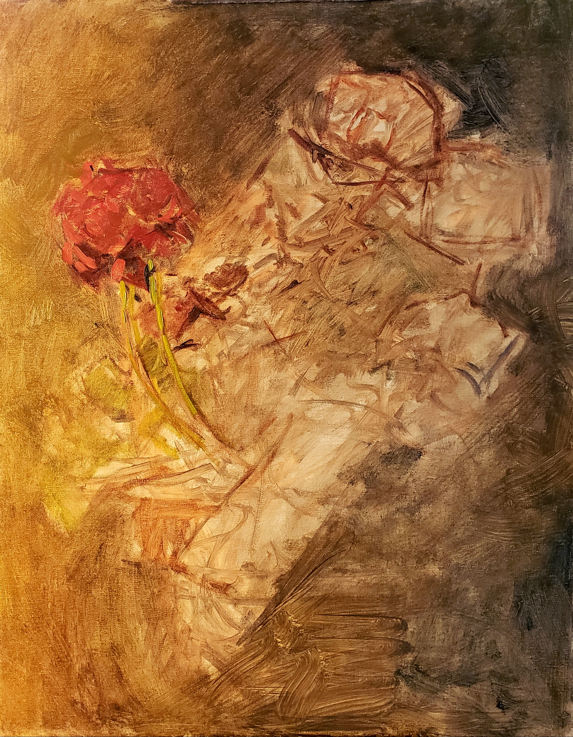 Day 1.This painting has proven to be a real challenge. I am exhausted from it today. I am pleased with the results though and hope I can keep the “freshness” of the mark and not overwork areas.