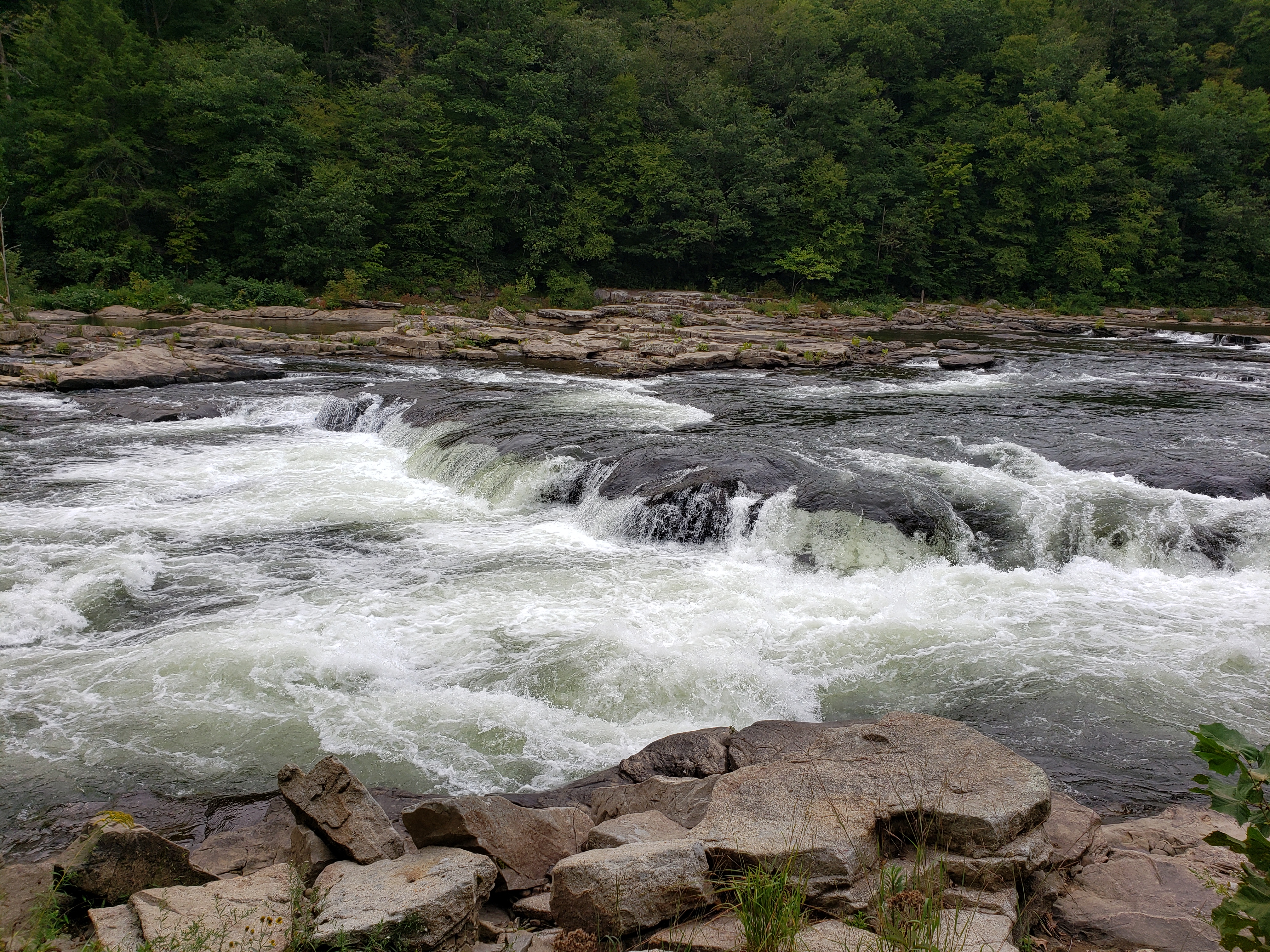September is a wonderful time of year to visit Pennsylvania. The mountains, trees and rivers are bursting with beauty. Our first stop is the Ohiopyle State Park Day 1 OHIOPYLE STATE PARK (162 MI. 2 ½ HR. ) from my home in Boyds, MD using 70 w TO 68 w South of Pittsburgh, PA This is a lovely scenic park noted for many waterfalls such as the Upper Jonathan Run, Sugar Run Falls, Cucumber Falls Lovely views along the Youghiogheny River “Yuk” It is also great for whitewater kayaking. The nice thing is how accessible the river is from both sides. We were there on a Thursday and were so lucky to have the place to ourselves.