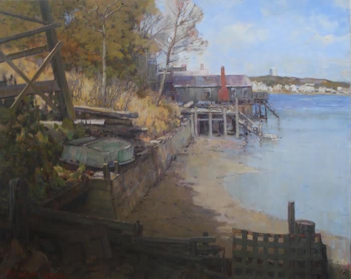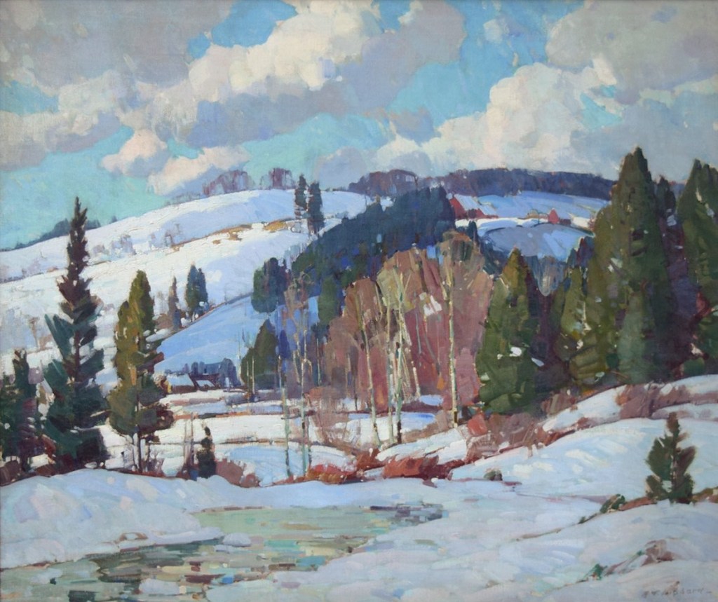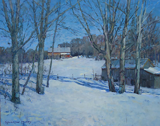 The painter Aldro T. Hibbard, known mainly for his snow paintings, made a huge impression on Kearns . “Hibbard spent his winters painting in Vermont. he is mostly known as a painter of snow. I think he was the best snow painter who ever lived. He would take his Gloucester easel out no matter how cold it was and paint alone in the hills of Vermont.” I see some similarities in the work of both artist, especially the snow scenes. Kearns moves to Rockport and began learning the “Cape Ann style” of painting. “I stayed on exactly that course for my entire career. I am trying to make the same kind of pictures still, although I hope I have become a little better at it”. Another hero for Kearns is Willard Metcalf, an American Impressionist noted for his New England landscapes and his association with the Old Lyme Art Colony at Old Lyme, Connecticut.