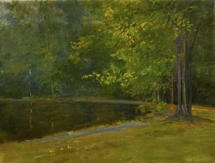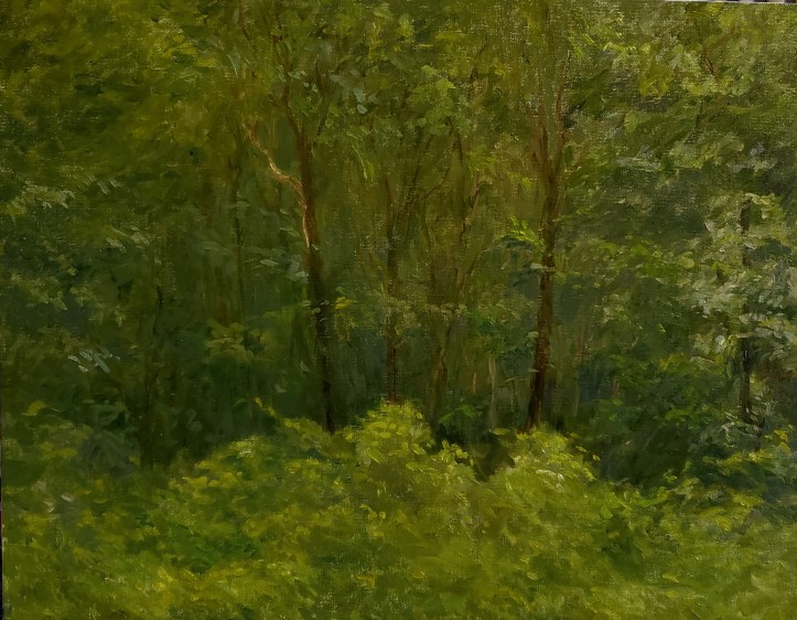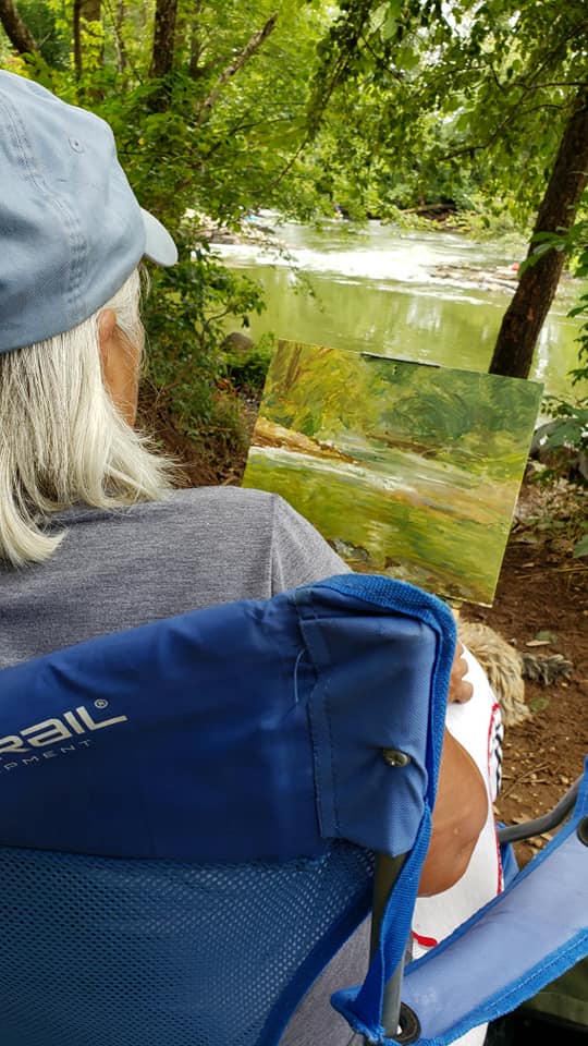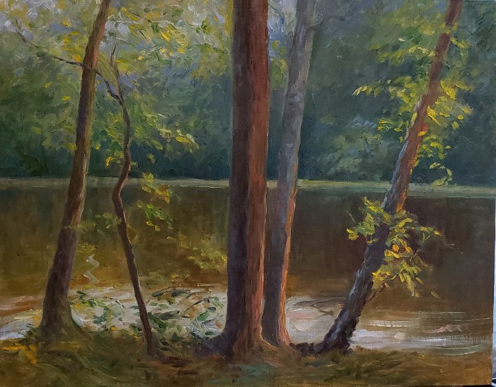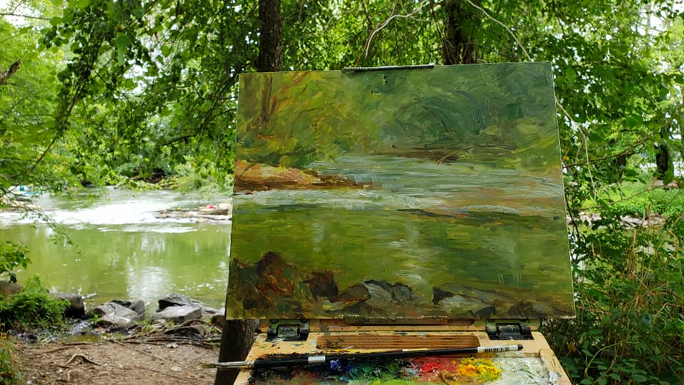It has been a very hot and humid summer here in Maryland. I am lucky to live in a very lush area of Maryland, complete with rolling hills, forest and rivers. Lots of little streams and rivers that beckon to come and get out of the heat. Over the years I have come to love painting in these beautiful calming areas. Deep cool forest with a little running brook are all I need.