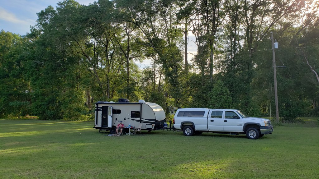 We approach the entrance to DeBernardo’s Rustic Farm. This is another Harvest Host stay and we couldn’t be more pleased. We are greeted by a friendly, smiling woman with flowing dark hair. Dawn DeBernardo, our host, is someone who takes much pride in her farm. At one time she kept horses but now her prized chickens are her companions on the eight acre homestead. Beaming in the Florida sun, she happily tells us how much she lovingly enjoys taking care of her land and doesn’t mind at all cutting all the grass herself. It’s meditative she says. Dawn points out to us that her brother lives next door as well as her ex-husband on the other side and many other family and close friends nearby. “Everyone knows everyone in this little town”