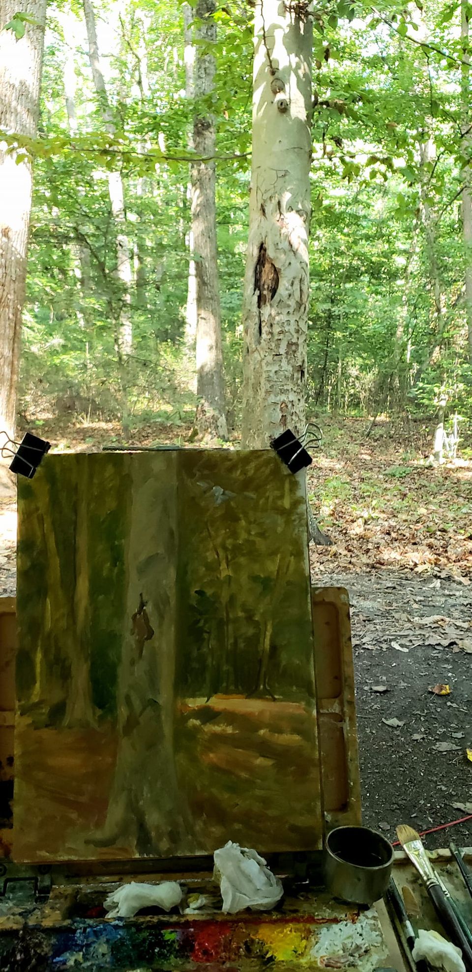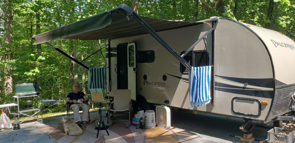 We really enjoy staying in our many state parks across the United States. Our first stop was at nearby Greenbrier State Park. “Path through the woods”Good to be painting outside again. Our campsite is nice and shady thank goodness. There is a lovely lake nearby and nice walks through the woods.