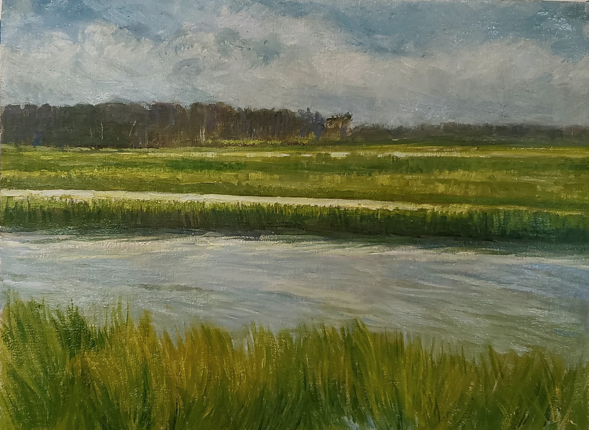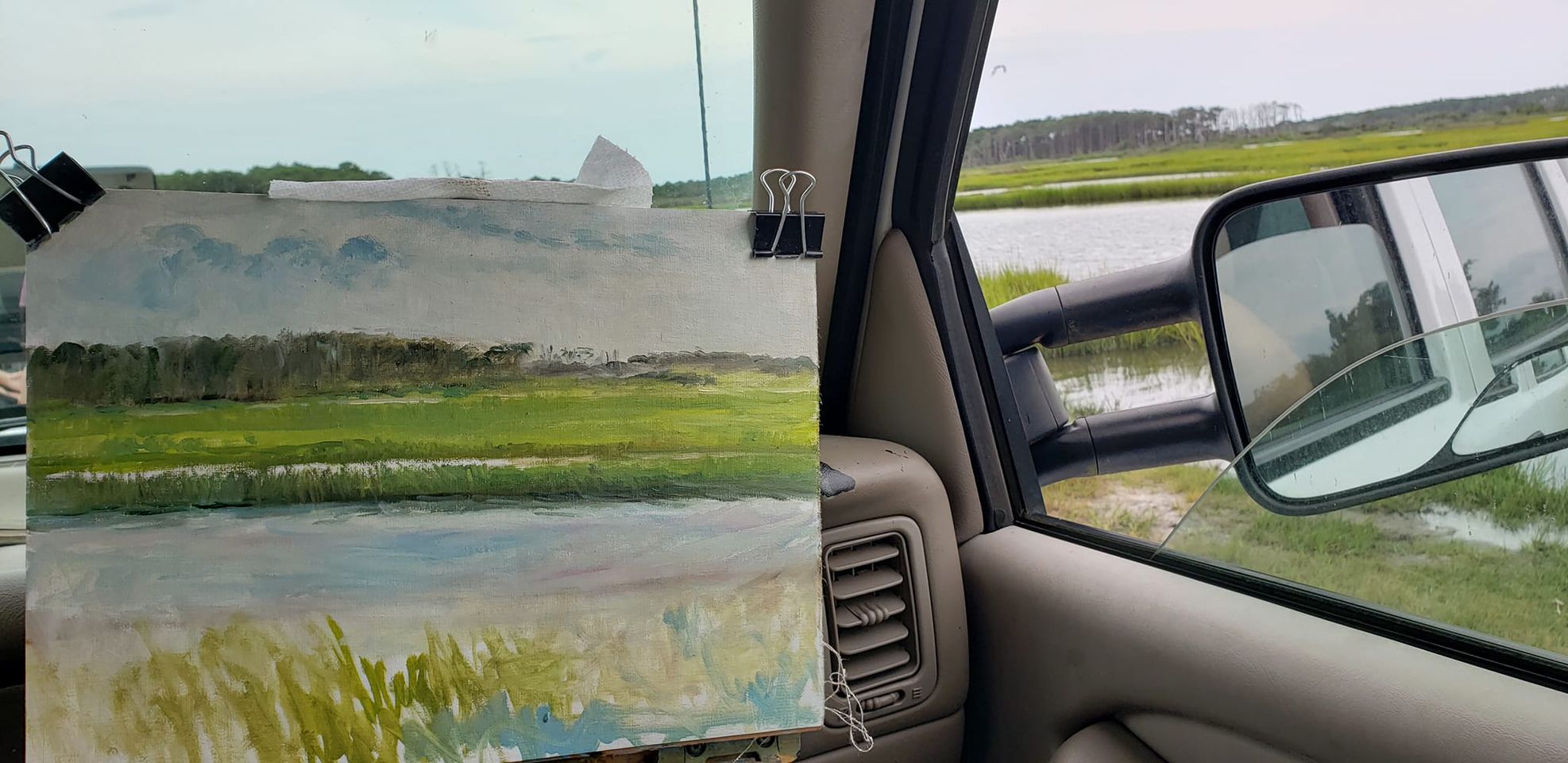 I decided to paint from the truck to get out of the wind. This is a view I have painted many times. “Old Ferry Landing in August” (11×14) oil on linen panel