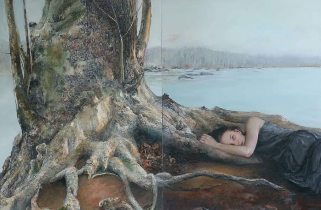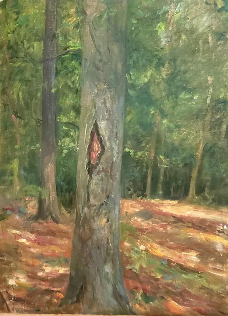 Tuckahoe Tree (9×12) oil on linen. I loved this tree scars and all.