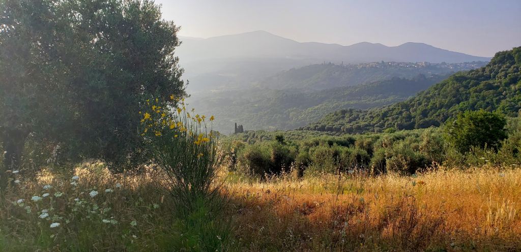 Montegiovi was magical and it felt like I was stepping back in time. The house I stayed in was built in the 14th c. Boy, they sure don’t know how to build them here in the US like the italians used to. It has only been 15 years and my house needs a new roof. The ceramic roof tiles are so long lasting, maybe we should try building our houses out of stone. Here are a few pictures of this lovely ancient town. I was plagued with a “bum right leg” and could not walk very easily without the aid of a walking stick and standing while painting was a challenge. I am doing better now and hopefully this issue will resolve. Has something to do with arthritis… hmmm I don’t feel old? I found painting in and around the house and locally was actually great. I never wanted for an inspiration.